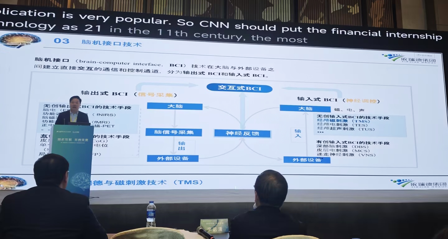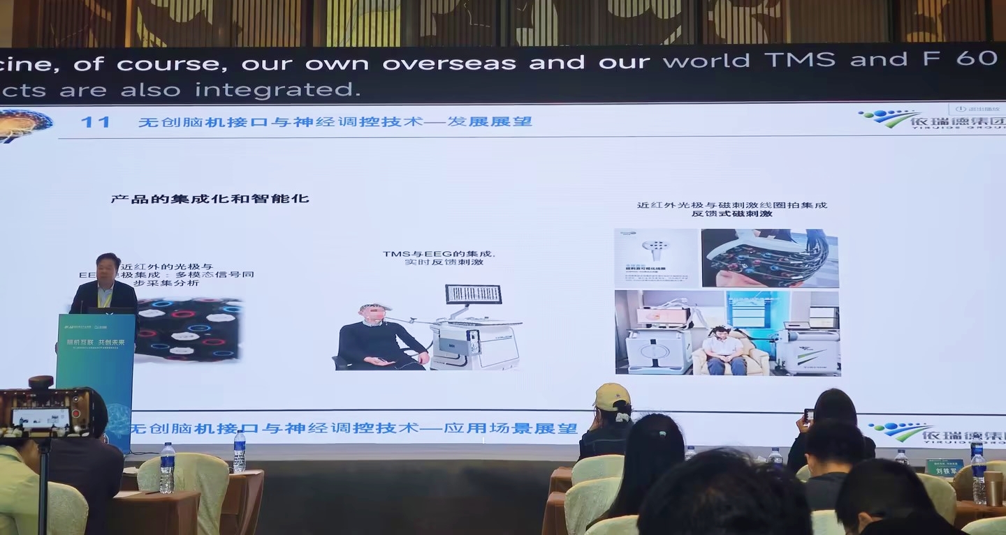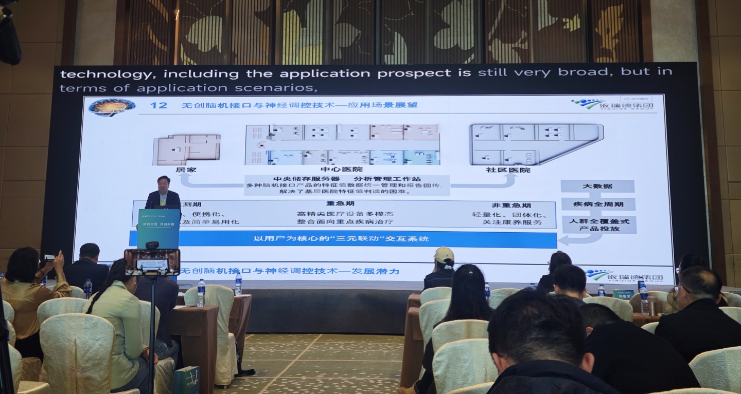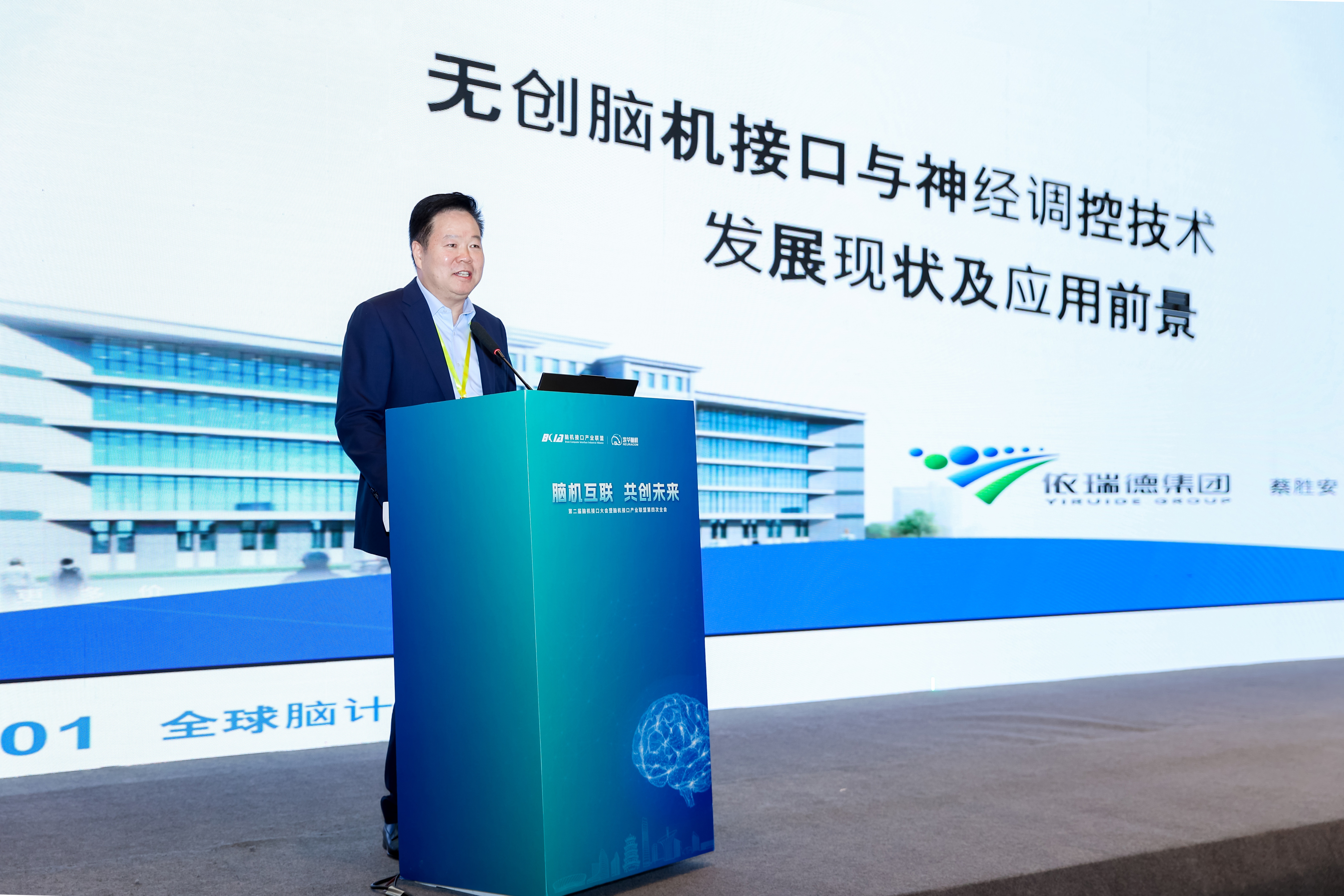 11月16日下午,依瑞德集團總裁蔡勝安先生作題為《無創(chuàng)腦機接口和神經調控技術的發(fā)展現狀和應用前景》的主題報告。