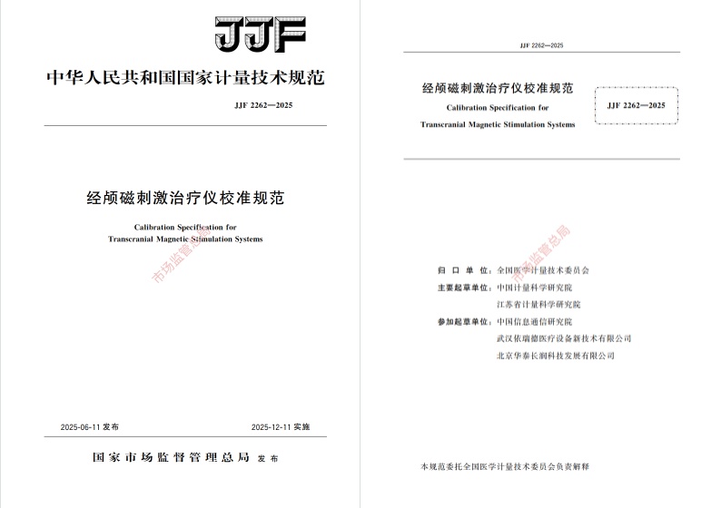 2025年6月11日,國家在經(jīng)顱磁刺激治療儀計量技術(shù)領(lǐng)域的最高權(quán)威性和強制性要求——《中華人民共和國國家計量技術(shù)規(guī)范-經(jīng)顱磁刺激治療儀校準規(guī)范》(JJF2262-2025)(以下簡稱《校準規(guī)范》)由國家市場監(jiān)督管理總局正式發(fā)布,并將于2025年12月11日起正式實施。